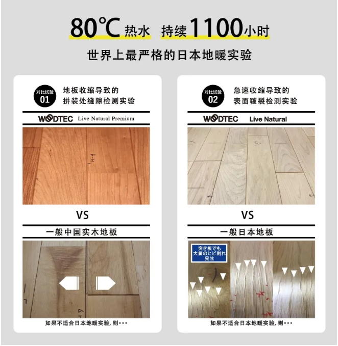 ③通过全球最严酷的日本地暖实验。80度热水持续1100小时(三个月)加热不变形
