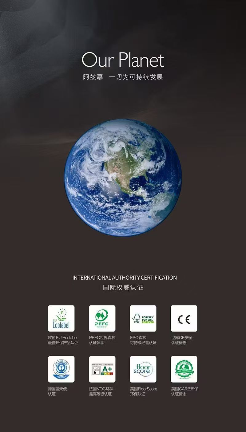 阿兹慕无缝拼地板,国内无二。小于0.02MM微距,再也无惧家有宠物闹腾(宠物撒尿、猫砂等不会渗漏进地板缝中,美观的同时更易清洁)。