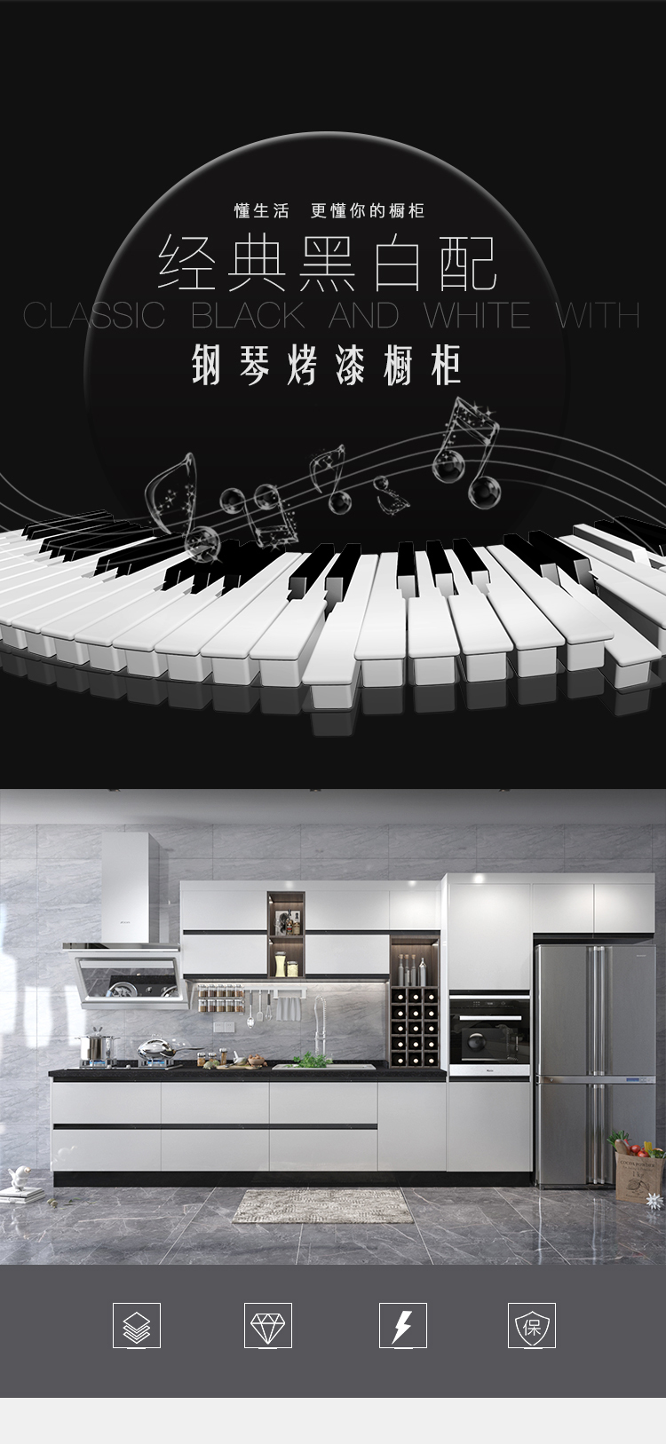 饰韵橱柜全屋定制钢琴烤漆橱柜轻奢风格开放橱柜定制
