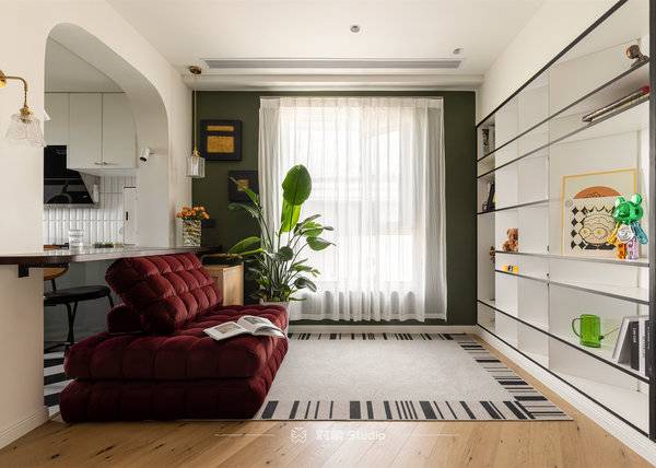 解决了卧室门正对入户门的同时满足了入户鞋柜以及客厅背景的需求,保证整个墙面的完整性,让空间更加的灵动