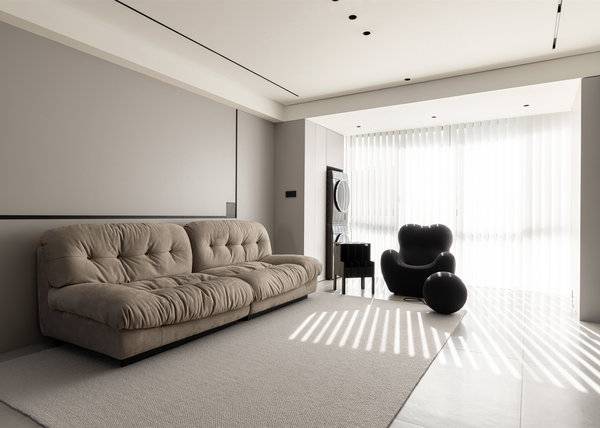 设计风格依旧以极简为主,采用灰色调,彰显屋主人的严谨以及追求简约的生活态度。