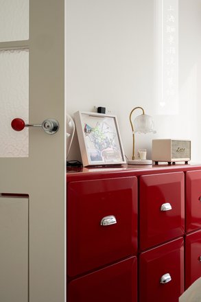 装修首页> 精选作品> 酾隶湘设计装饰> 奶油色为底,一抹红色点睛!她把