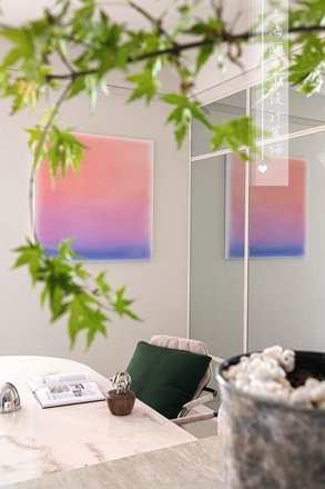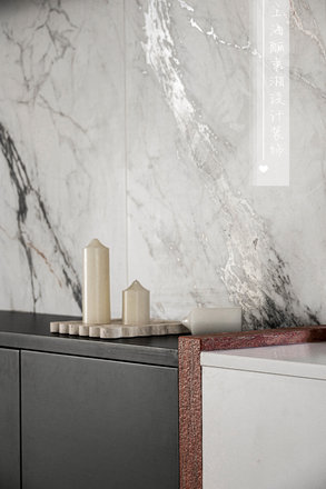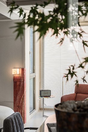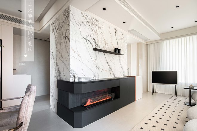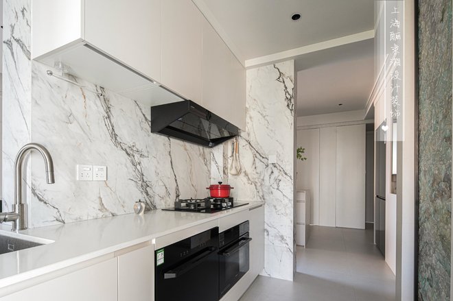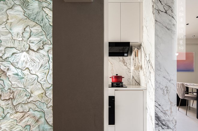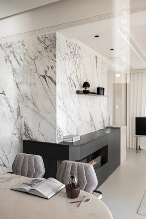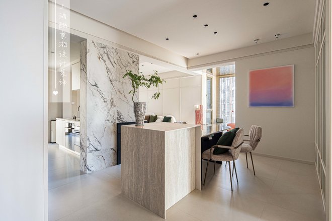 拆去北面卧室的隔墙,原本局促的客厅豁然开朗,成为家的新中心。原先的客厅则优雅转身,成为专属的用餐区域。厨房的墙体消失,化为开放式餐厨空间的一部分