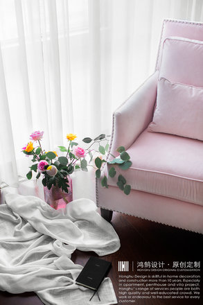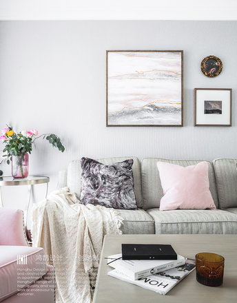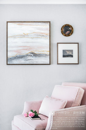 家具精致却具备不可或缺的属性,混搭却不突兀。可沉入式憩息也可惬意式欣赏它。灰色与粉色和谐且温柔的存在于每个角落。