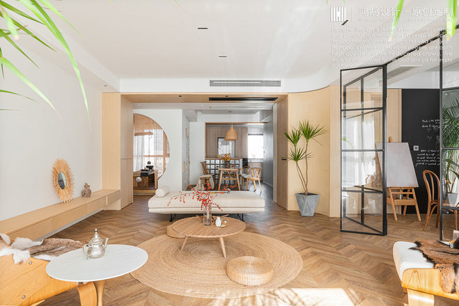 • 设计理念:把客厅/餐厅/厨房/书房,最大化敞开,完美实现女主平时的工作与家庭、休闲的动线需求。