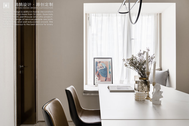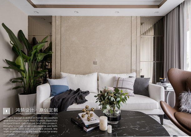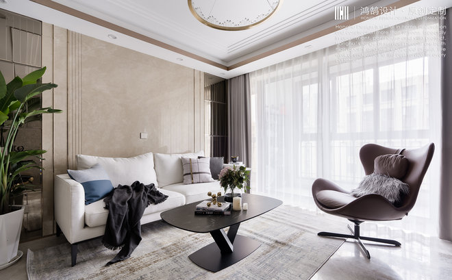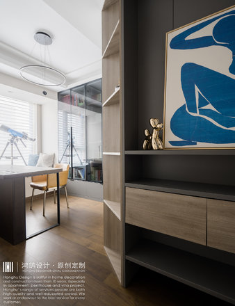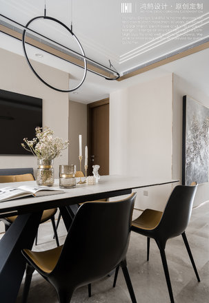 - 设计理念:家具选择与硬装空间相匹配的中性色以及同类色进行搭配,少量饰品及布艺选择对比色突出亮点,更温馨舒适