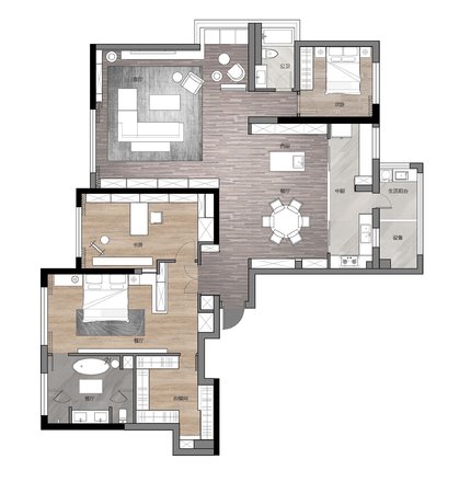 • 业主要求:喜欢木质纹理,希望是温暖的现代,而非冰冷的黑白灰。希望能把木色运用出优雅、现代!