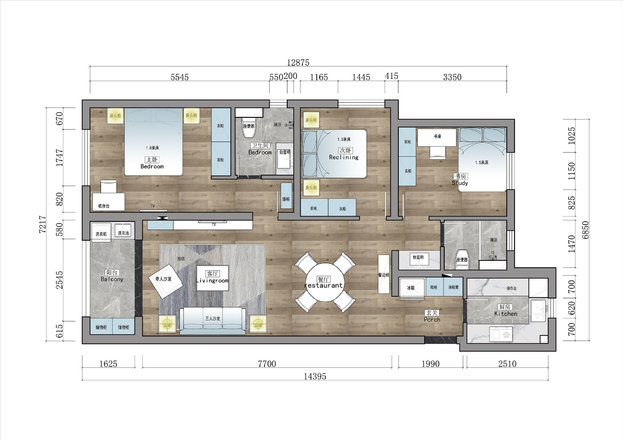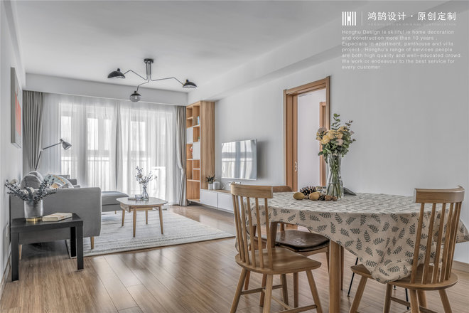 用经典的灰、白、木搭配,营造了清新明亮、自然温暖空间的氛围