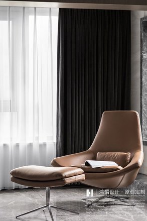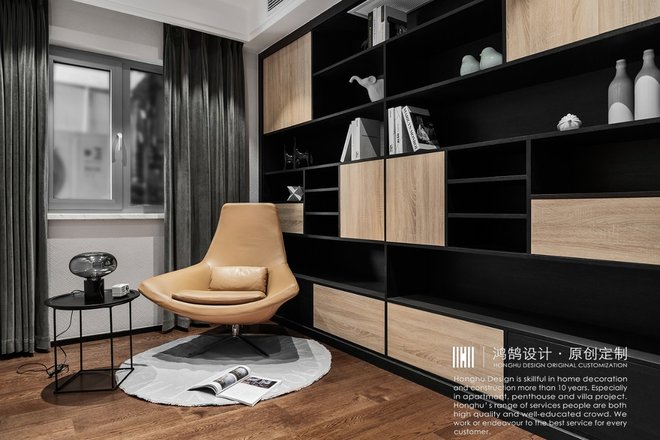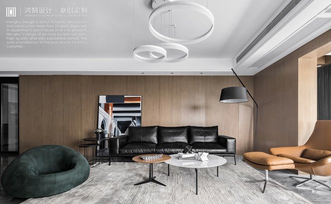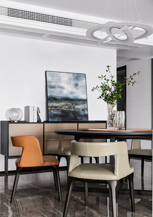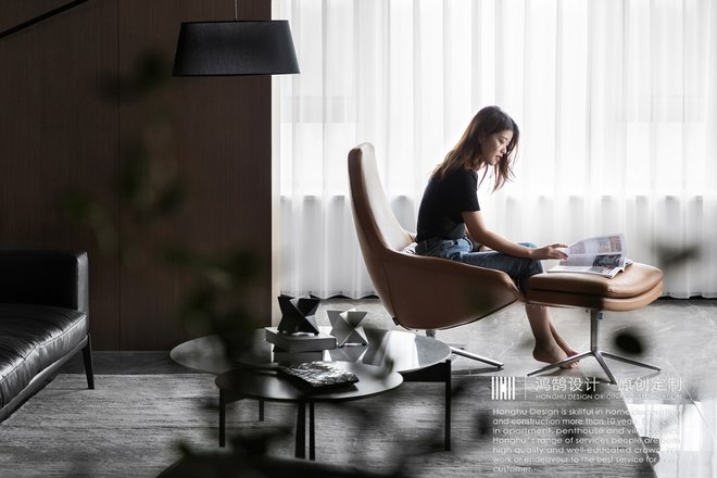 在高级灰的空间中,点缀富有活力的橙色,以及质感非常的黑色皮质家具。当光线照进屋内的那一刻,温暖、舒适与沉静,在内心充盈。