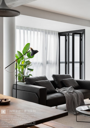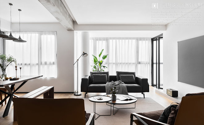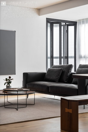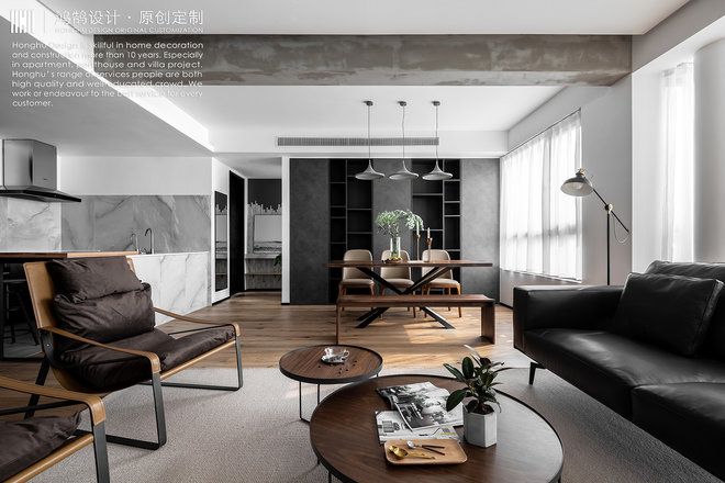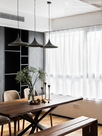 客厅和餐厅中间的横梁,设计师做了保留,并且用水泥漆进行了涂刷,给空间增加了几分层次感。