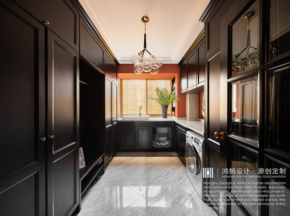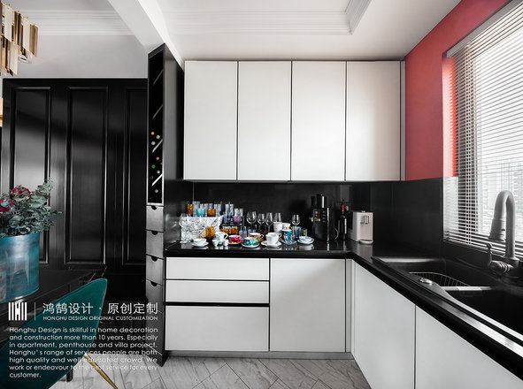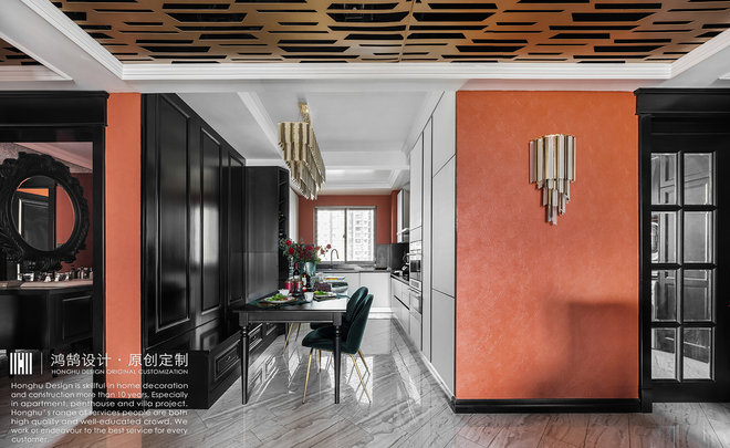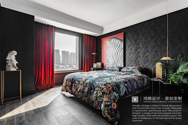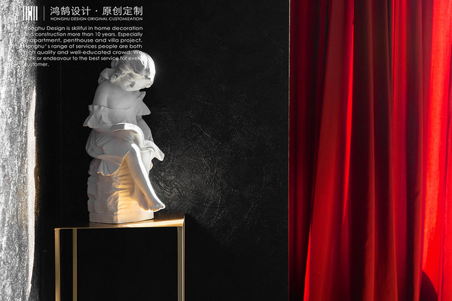 整体空间主色调以饱和度高却又很收敛的颜色“红”与“黑”为主色调,就如设计师本身性格一样,既热烈又内敛。这种充满张力的色彩,让设计师很享受其中。