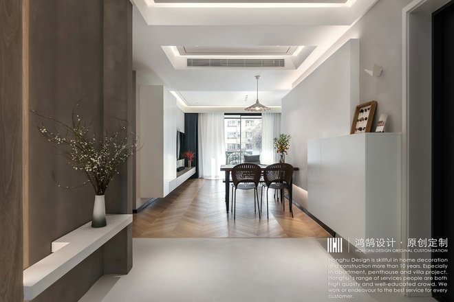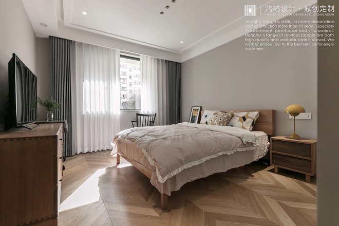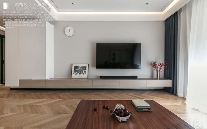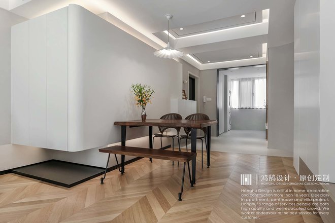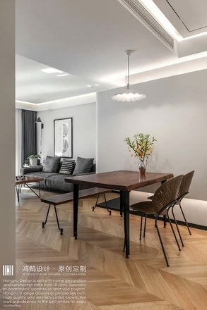 整体颜色采用灰色搭配白色突出空间层次对比,鱼骨拼地板让空间更有高级感,整体闲适、清闲安逸的生活 !