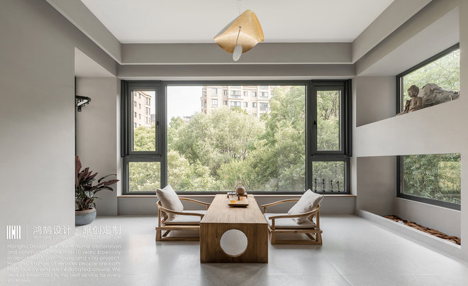 在设计之初希望把室外景色引入室内,挖掘三楼优势,释放大阳台优势。同时考虑空间趣味性,兼顾功能实用性。