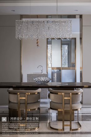 一层客餐厅原有大理石木饰面偏黄。整体比较压抑死板。客厅吊顶拆除改刷白吊平顶嵌入不锈钢条,背景墙选用3D浮雕墙纸点缀。