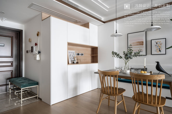 建议保留原始空间留下来的硬装基底, 并从这基础中提取可延伸的设计元素,打造一个清新精致的小北欧氛围。