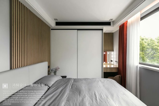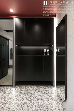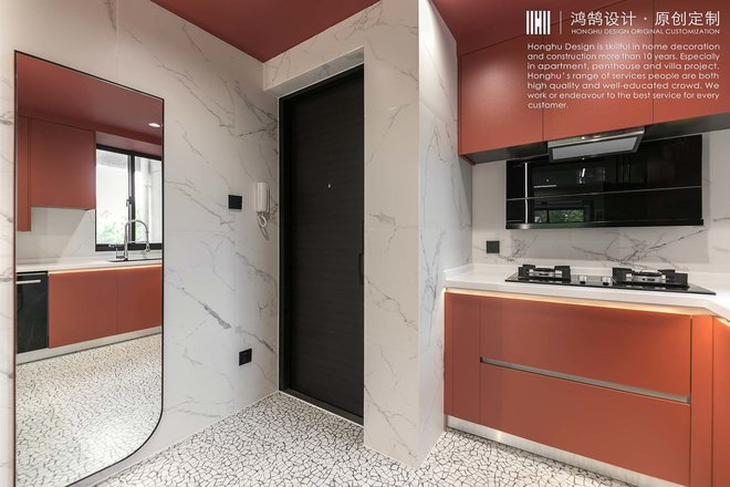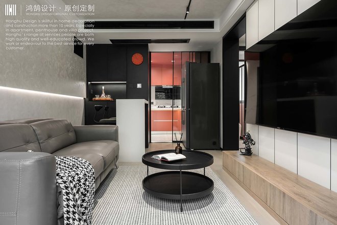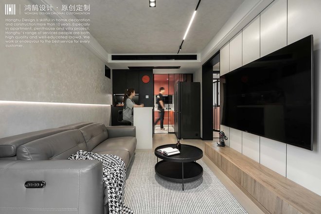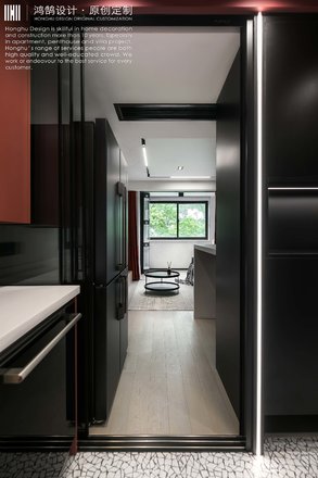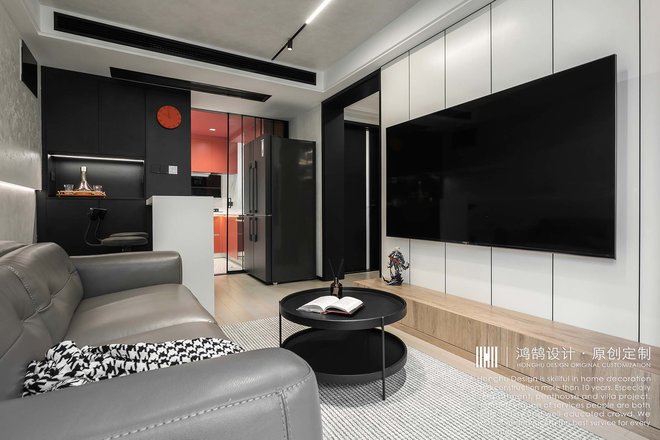 ①增加了玄关区域,单独厨房改为半开放式厨房。②增加电视背景墙的宽度,同时优化了过道的空间