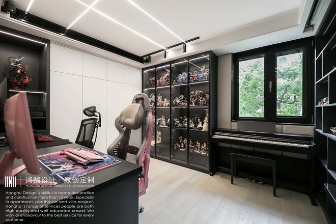 ①有宠物独立的活动空间 ②隔音较好的游戏室③手办站区域④半开放厨房⑤充足的收纳空间