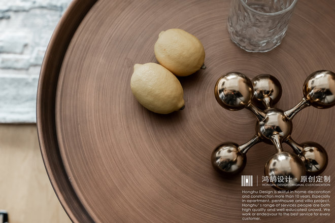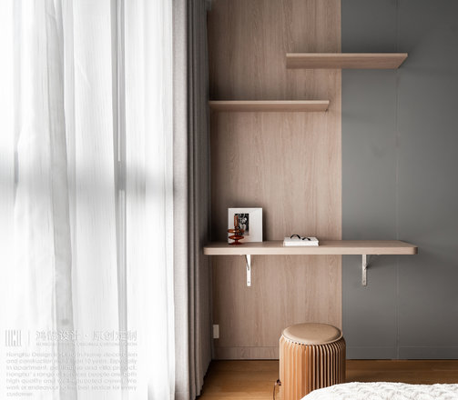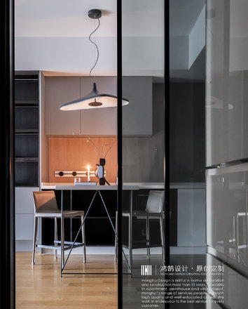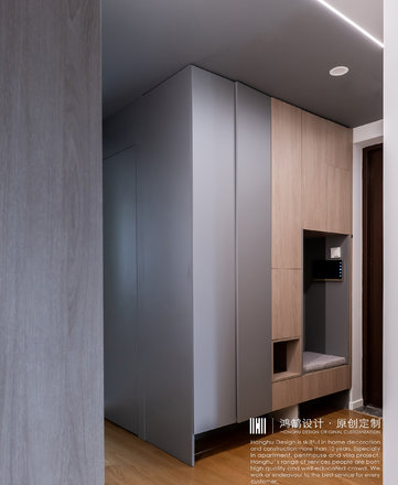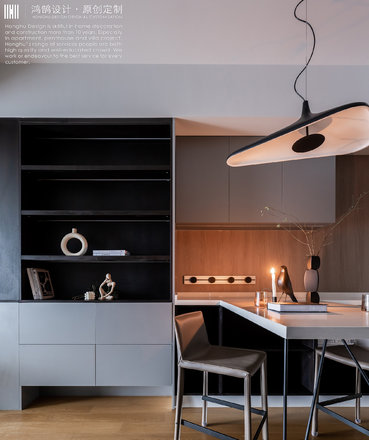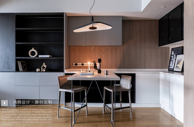 增加储物,整体以深灰色搭配原木色,色调沉稳,烛光营造出温暖的氛围。