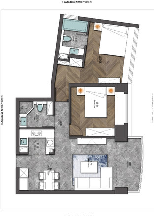 - 业主要求:喜欢日式N北欧和原木质感,简单干净的样子。保留两个卫生间