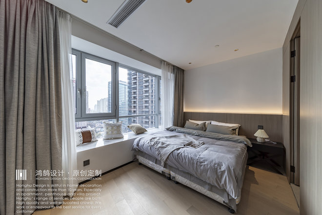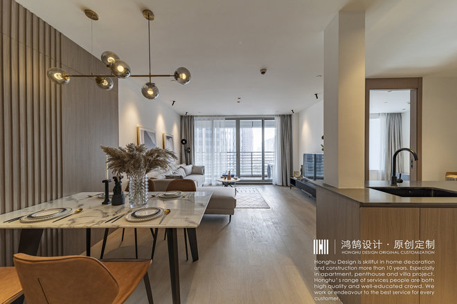 - 设计理念:整个空间化繁为简、摒弃多余的色彩和装饰、以柔和温暖的、而又极具质感的木色为基调、让简约诠释家的温度