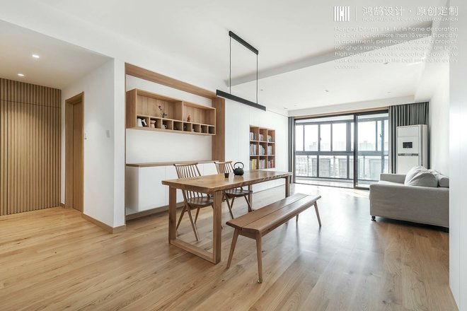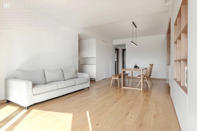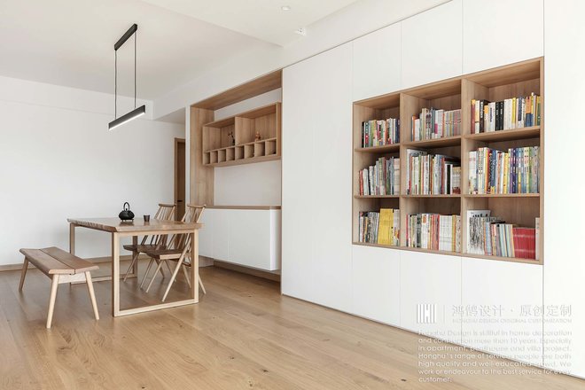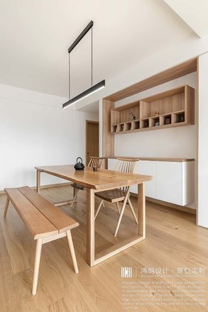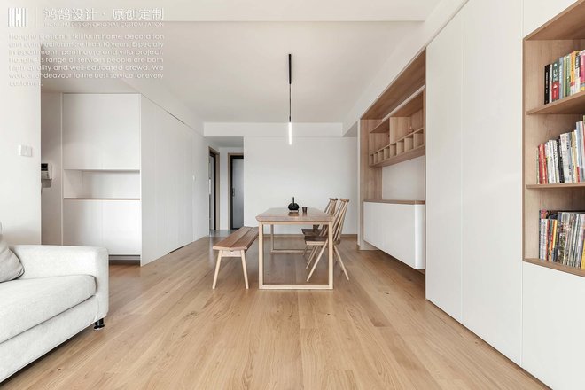 原始户型空间比较零碎,不够方正,本案在平面布局上进行了比较大的调整,