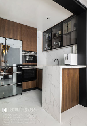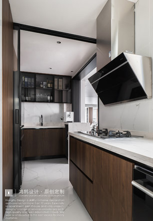 要求大量的储物空间,有在家办公的需求。中西厨。