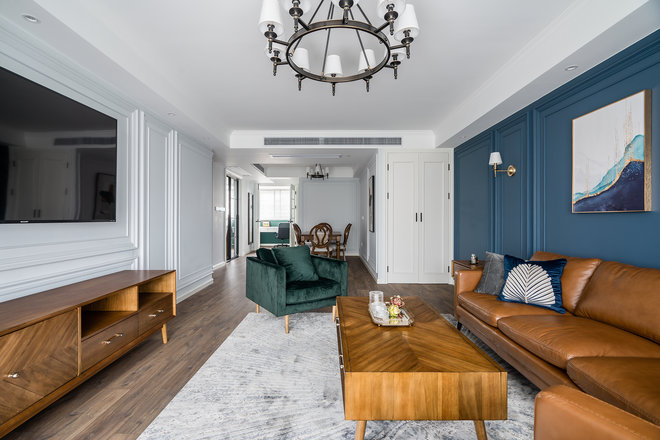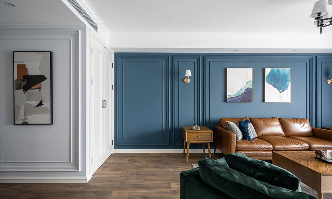 沙发背后的颜色,特别的喜欢。线条墙面,特别的有仪式感。最满意实现了大厨房,各种大小储物柜12个柜子,