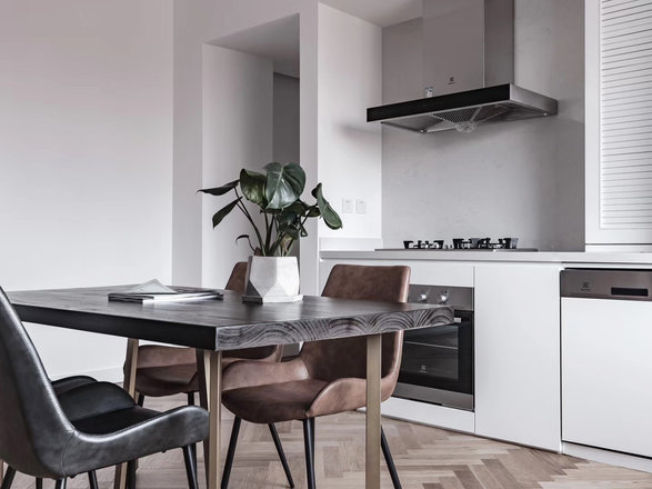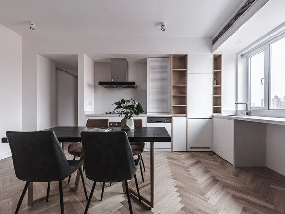 本案设计主要围绕极简、干净明亮为主体,避开固有软硬装营造的空间设计,所以本案在风格上转向了“去风格化