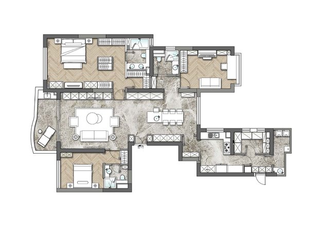尽可能多的储物空间,足够大的厨房,足够多的操作台面,增加空间的采光度