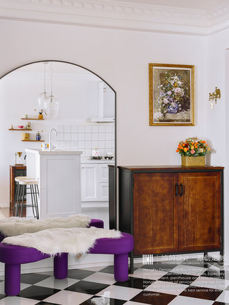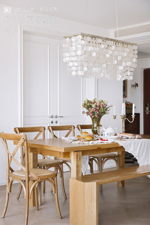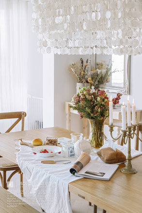 四卧朝南,阳光充裕,两房打通的客餐空间和开放式厨房使视觉中心扩大,让整个房子通透明亮。