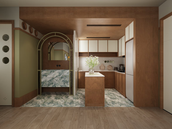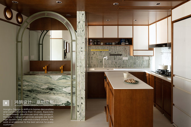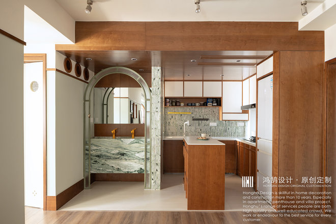 开放式厨房,干区台盆拉出来,次卧回形动线。