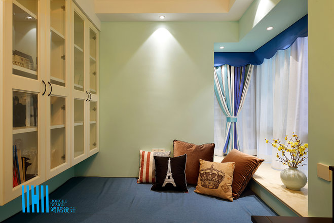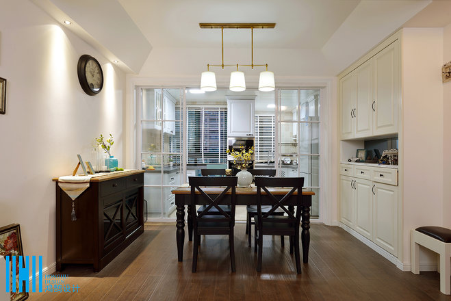 打开案例照片,找一本书,遮住墙面与地面——你看得到的顶面,是一个现代风格,棱角分明,带有斜面,木有线条的顶面——这是不是你的第一眼,感觉这个美式场景清新脱俗的密码所在?