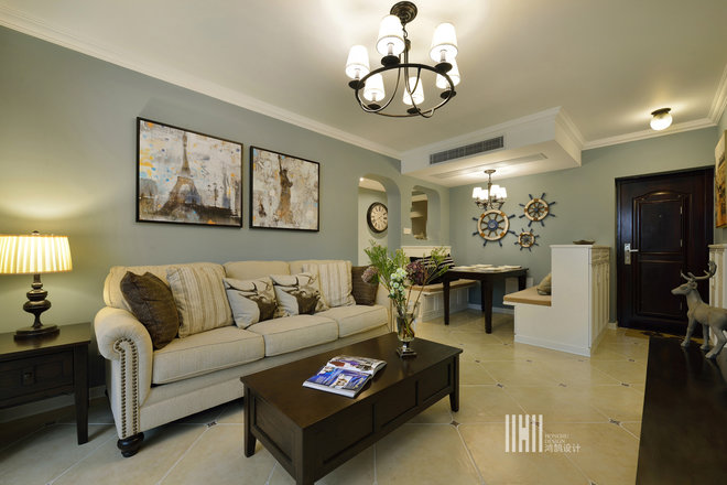 第一眼就被沙发背景墙的画给吸引住 自由女神像和埃菲尔铁塔 已经让我们知晓了业主的风格