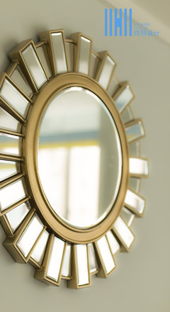 沙发背景墙上的一面镜子像不像是船舵