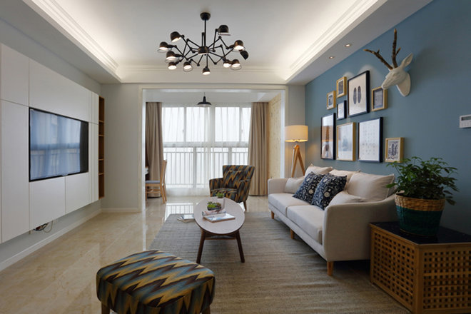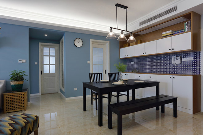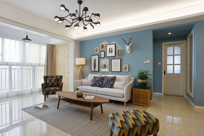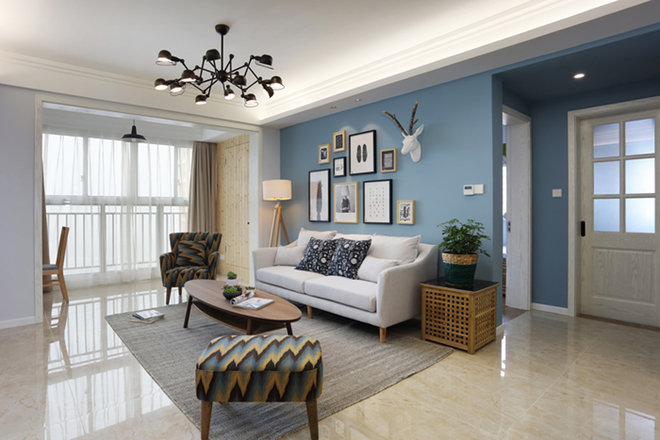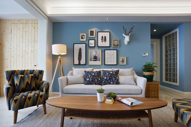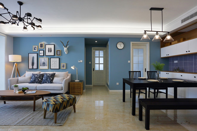 冷色调可以带来时尚现代的感觉,尤其在现代简约风格的室内装饰中非常常用,低调奢华的蓝灰色,比白色冷艳,比黑色清新,非常适合搭配各种材质的家居配饰,打造清新时尚且现代感十足的公寓。