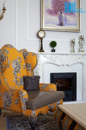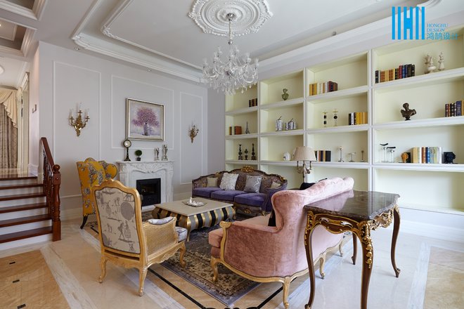 设计师根据业主的生活习惯,考虑将整个空间西化, 客厅家具的摆放由传统看电视转变为了亲近交流的会客形式,保留了西方的壁炉情节,使得整个氛围不光从装修风格,更从生活方式上贴近业主。