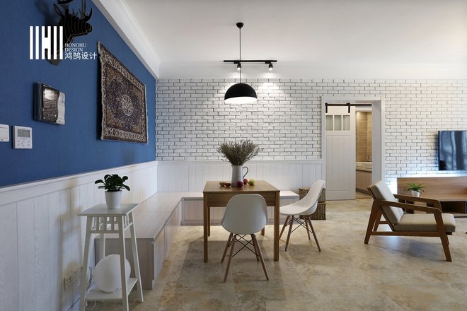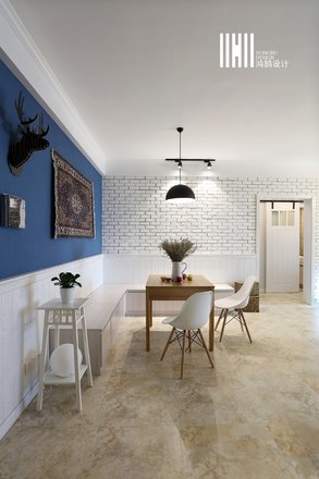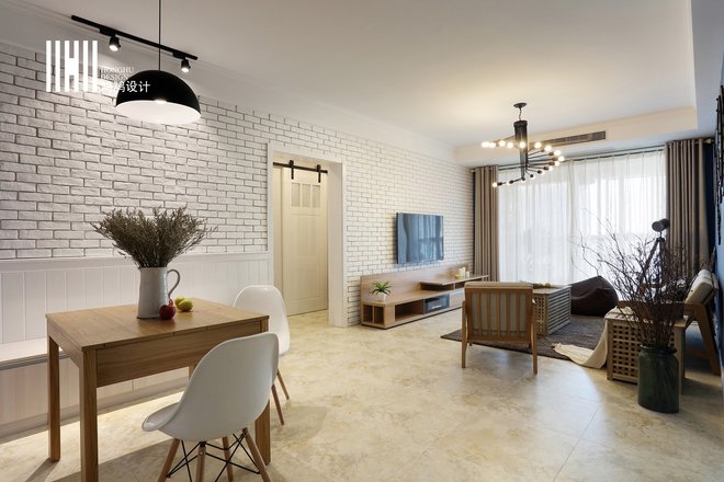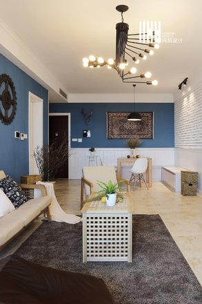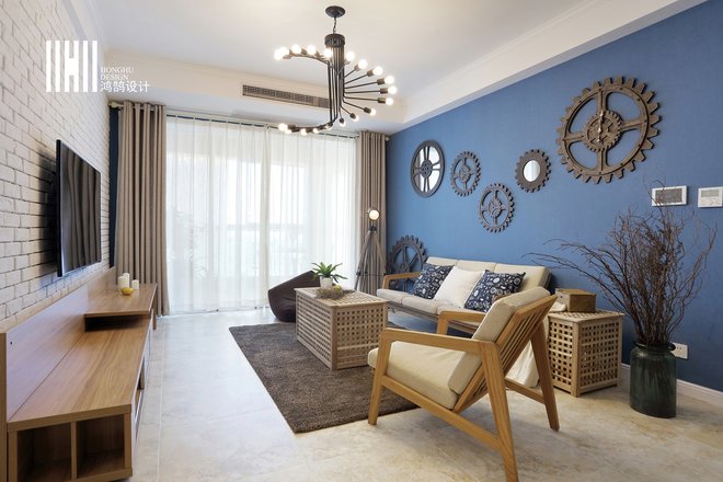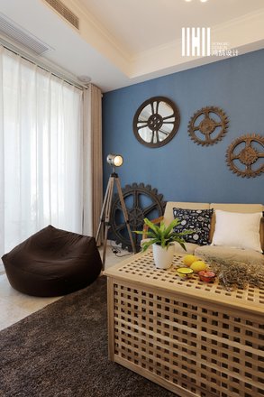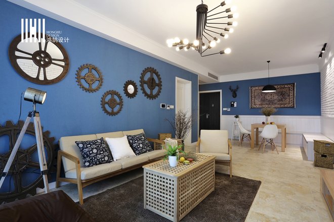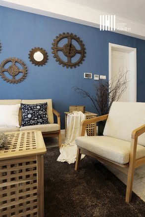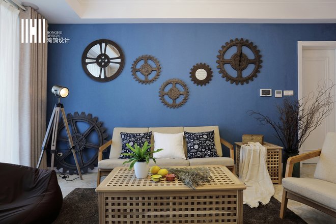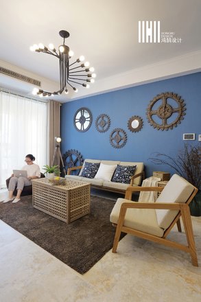 原始之感充满了整个空间,温暖的木质感,朴素的文化砖,很具时尚感、上上下下的回旋创造出种错落美的灯具,以及沙发背景大大小小的齿轮铺满墙壁,让放松成为生活最好的装饰。