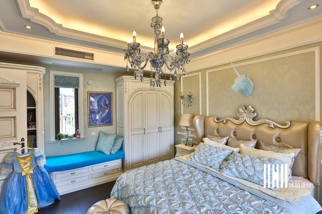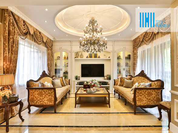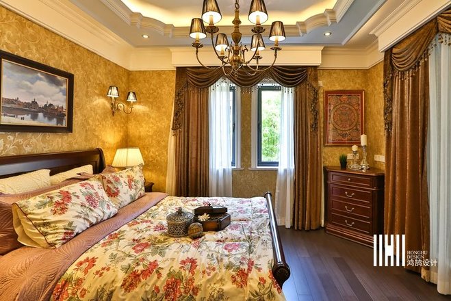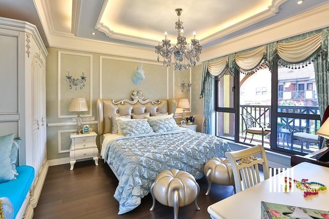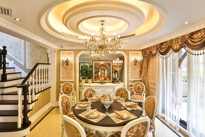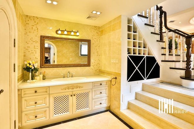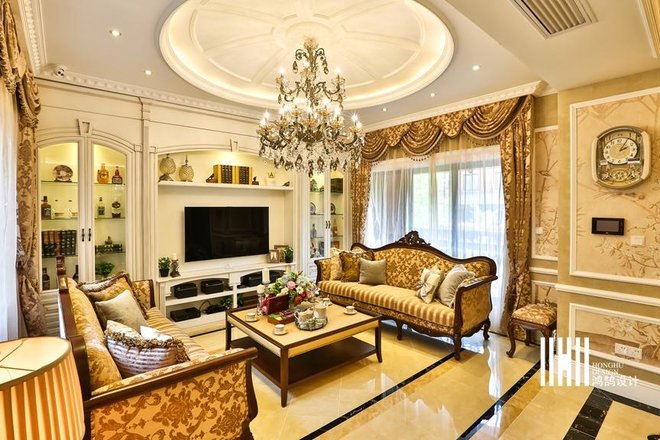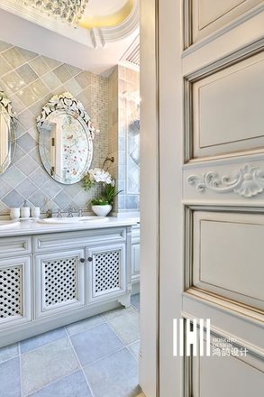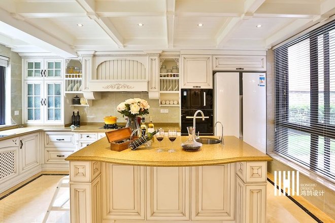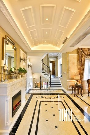 - 业主要求:美式风格:吊顶要复杂、地板要花砖、墙面要贴皮、颜色不要杂。颜色方面应该是奶白色系,设计上比较安全温暖