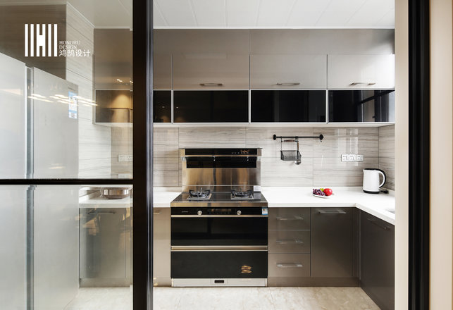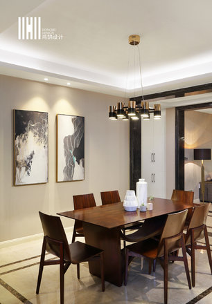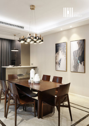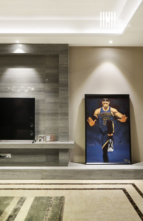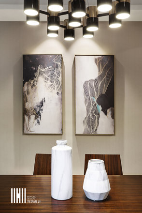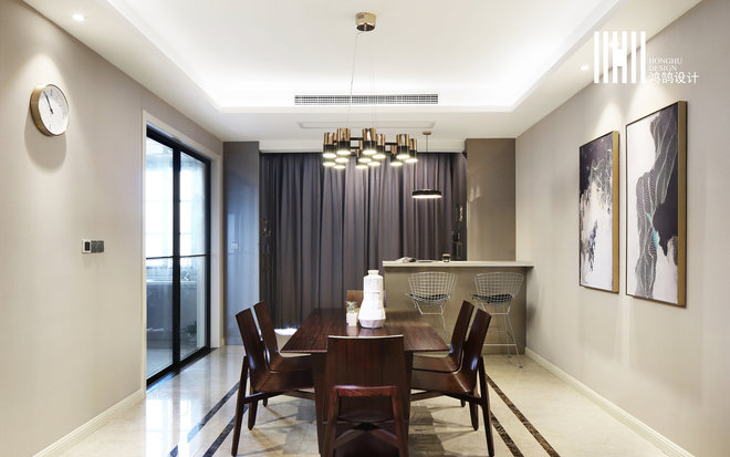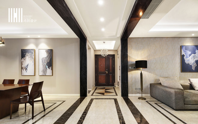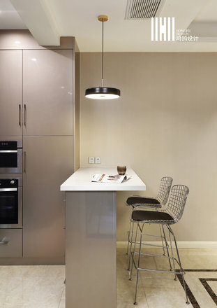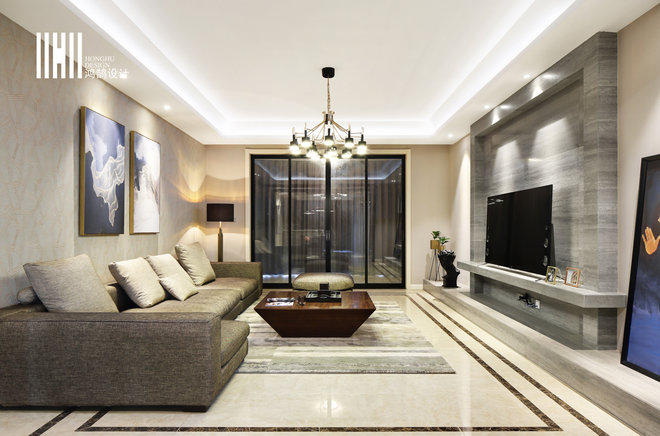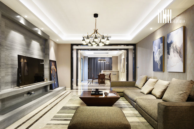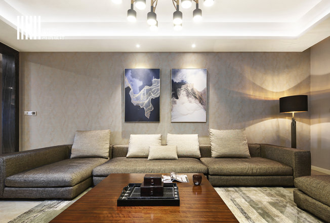 整体设计风格为现代简约,色调以高级灰和中性色家具来搭配形成冷暖对比