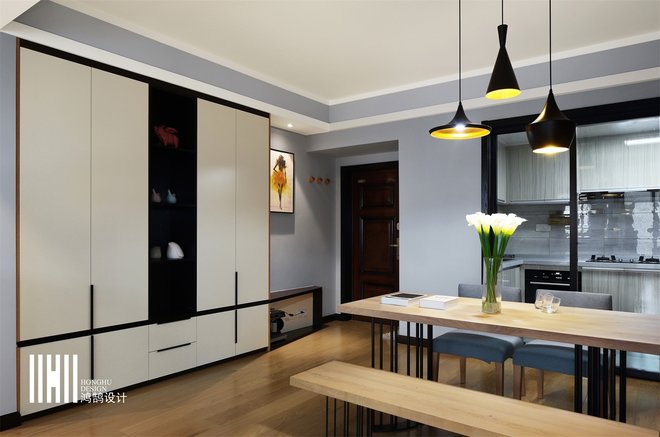 居家整体风格方面,利用素色和简洁的家具线条,创造出安稳调性