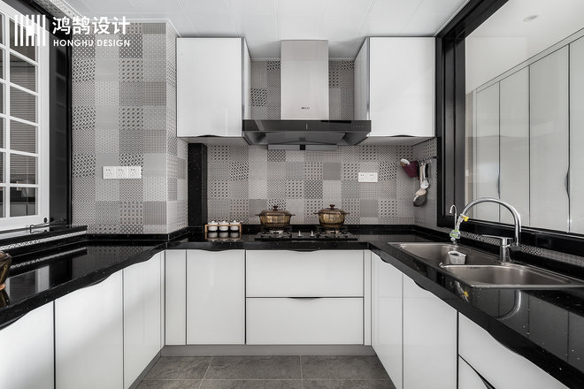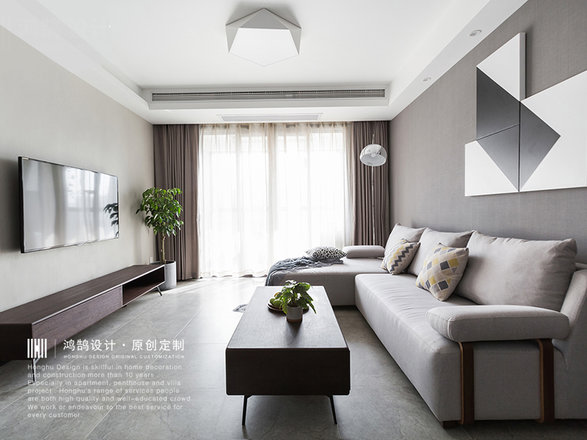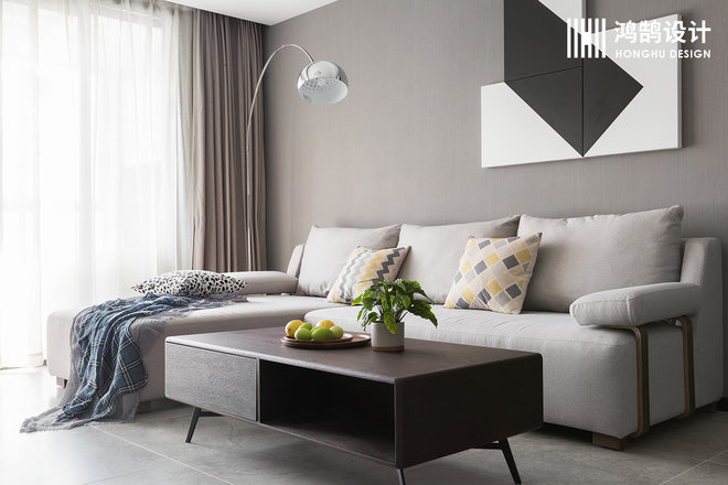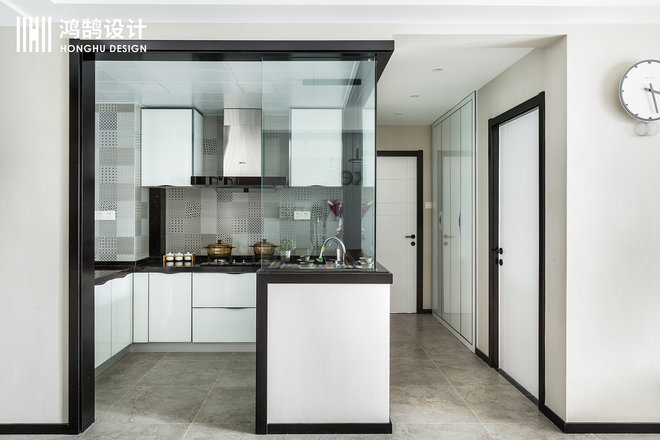 本案的装修风格为现代简约风格,完全的黑白灰搭配,整体简洁干练。