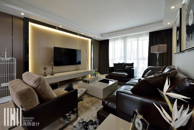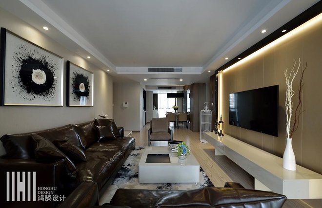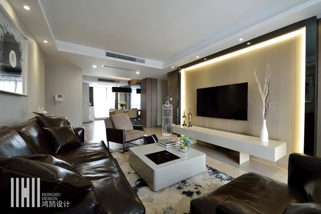 线条简洁扩展空间感,很普通的大厅显出宽阔感。黑白色格调,沉稳有力,不逊奢华。如果你觉得有必要增加一些曲线和细琢的美感,可以添加几件装饰品。