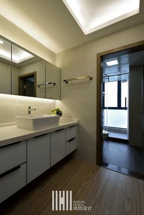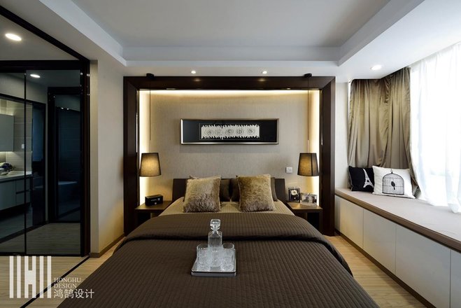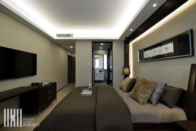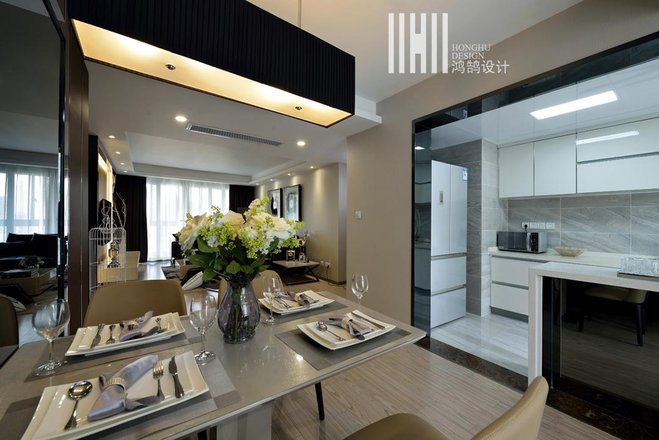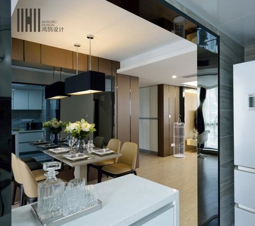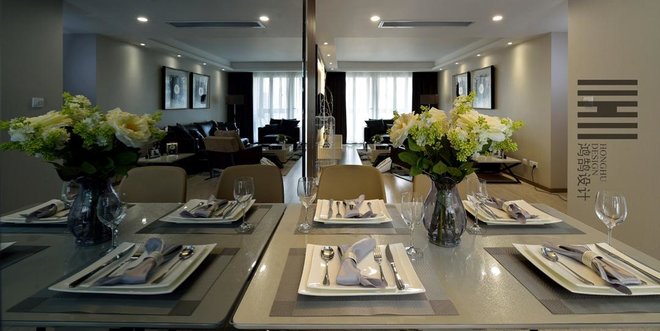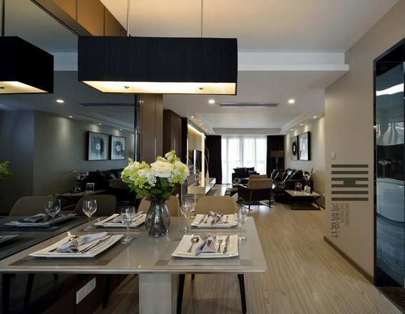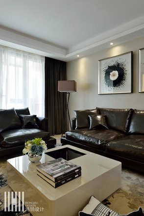 线条简洁扩展空间感,很普通的大厅显出宽阔感。黑白色格调,沉稳有力,不逊奢华。