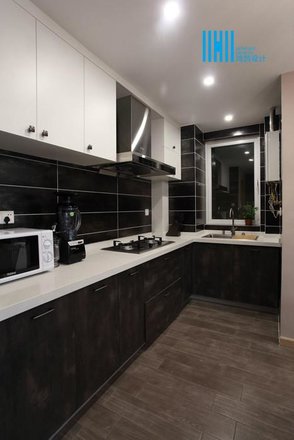 由于医院工作繁忙,业主夫妇在家吃饭的机会不多,希望在家可以得到放松,平面设计时,将厨房,书房,储藏,