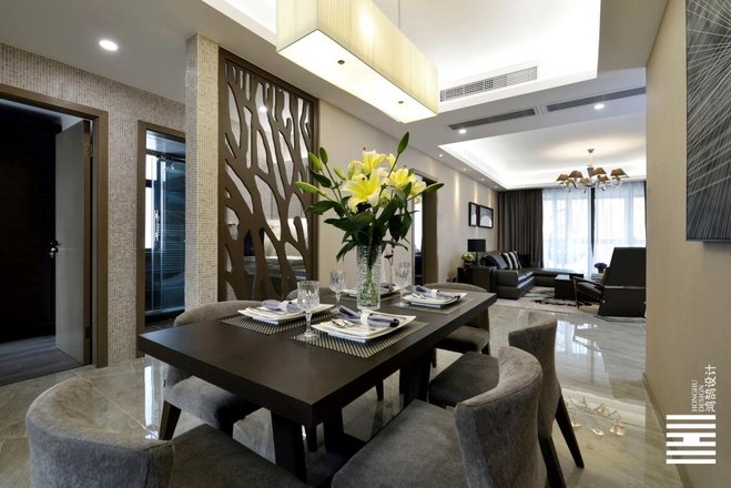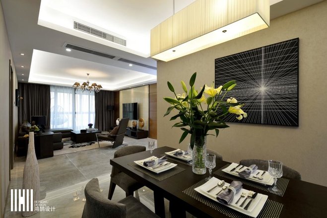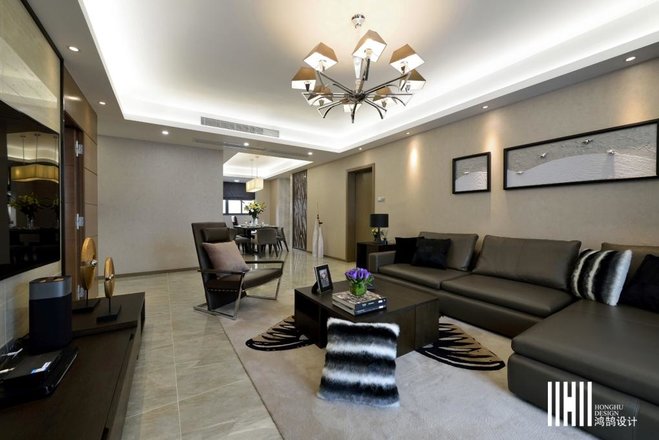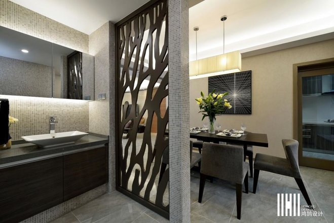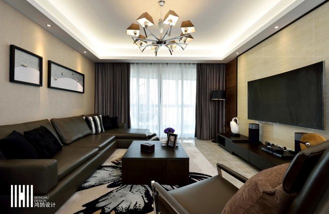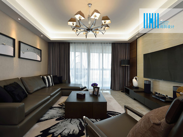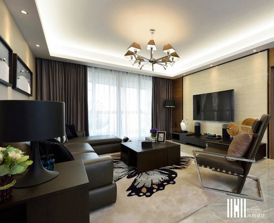 觉得咖啡苦就要加糖。觉得风格太过硬朗,就找点柔性的元素点缀一下——这里地毯上的蝶形图案,似乎超越“点缀”的程度了,宣兵夺主。
