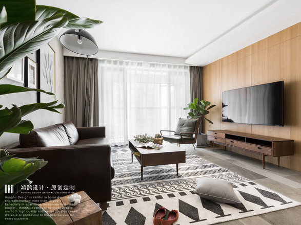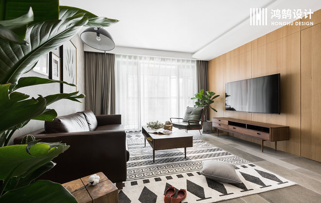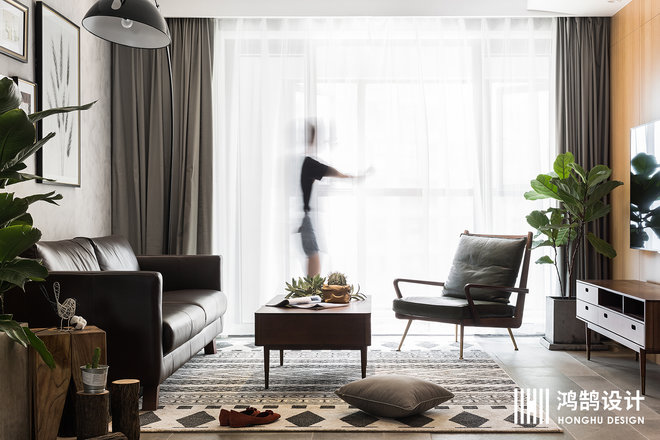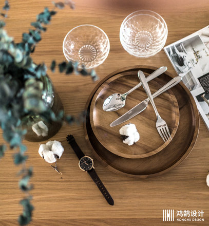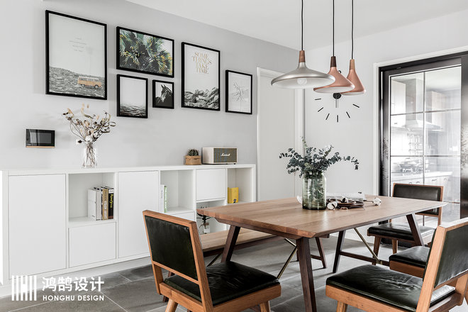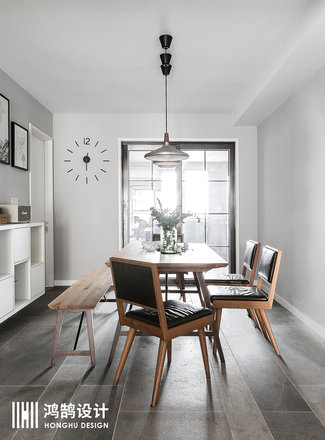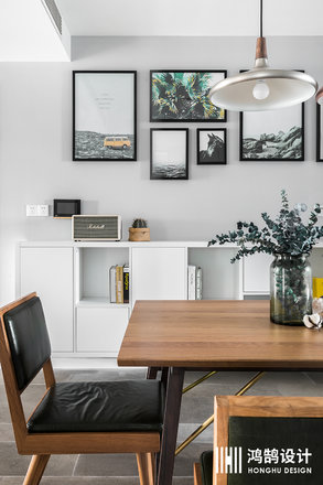客餐厅已灰白木为主,硬装少而精,软装后期丰富整个空间,让房子生动起来,像植物园一样有生机
