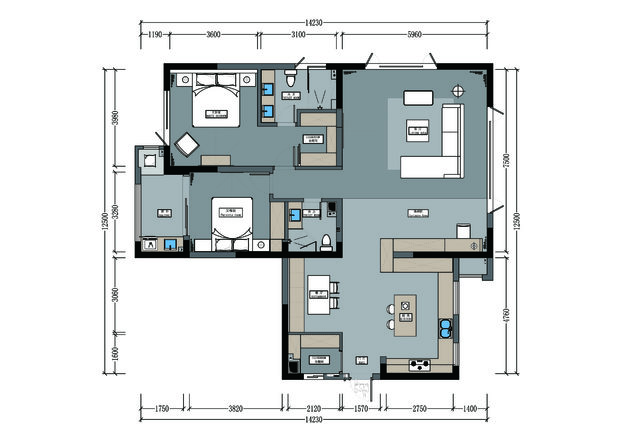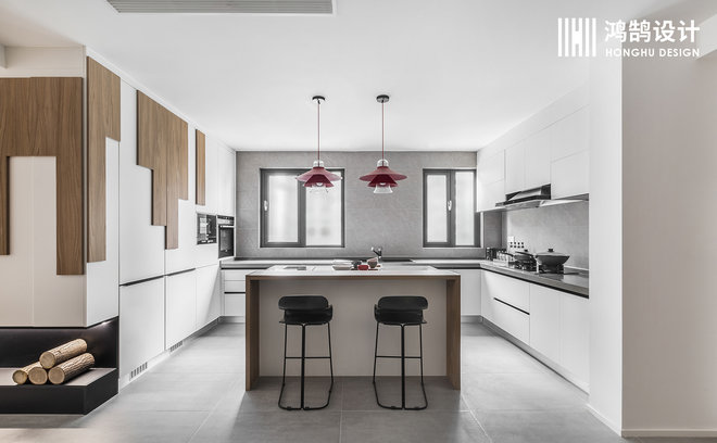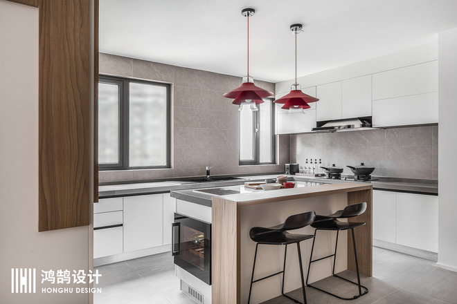 通过户型的改造把原来的厨房做成了入户衣帽间与餐厅,把原来北边的小房间做成了现在的超大的敞开式厨房。