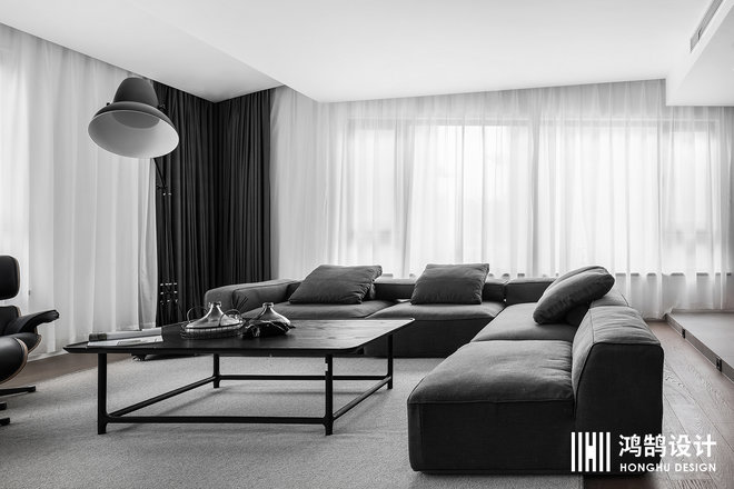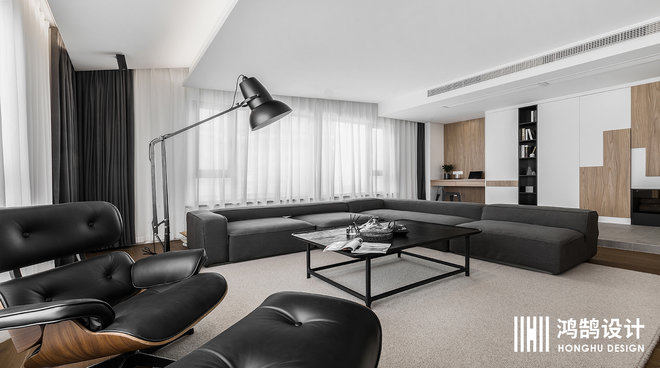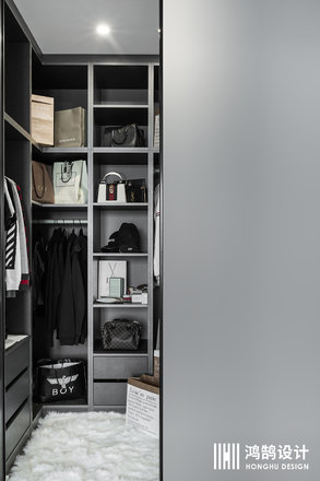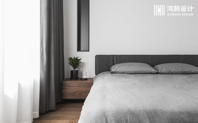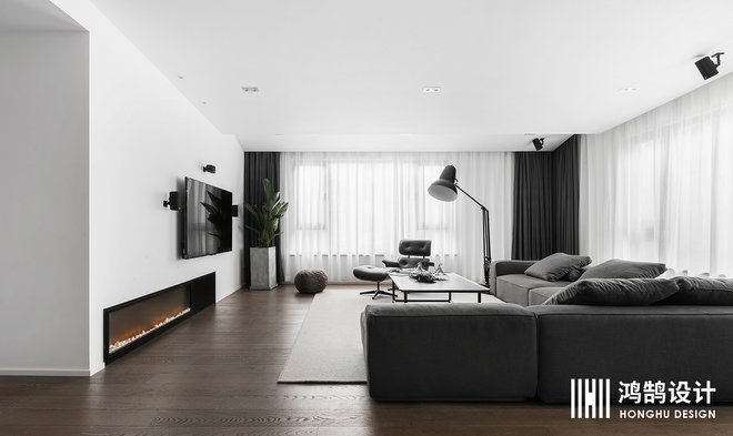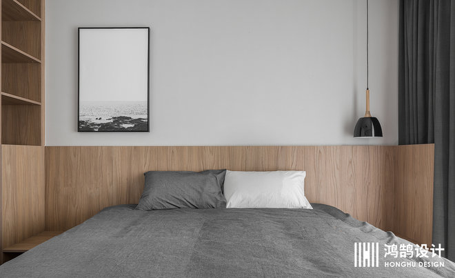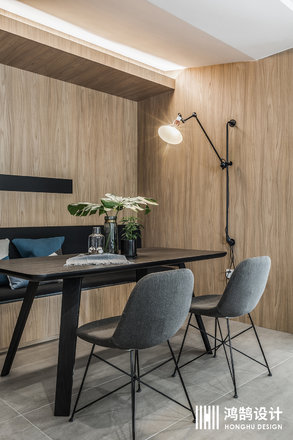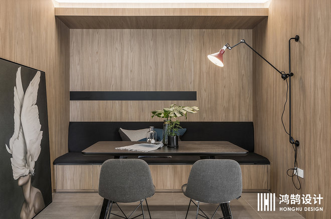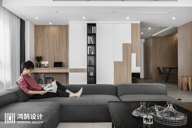 这套案子装饰表现很简单,做了很多的减法,希望通过功能去做装饰,不去做专门的造型背景墙,你看到这一面的造型它其实是一个非常实用的双面的柜子.