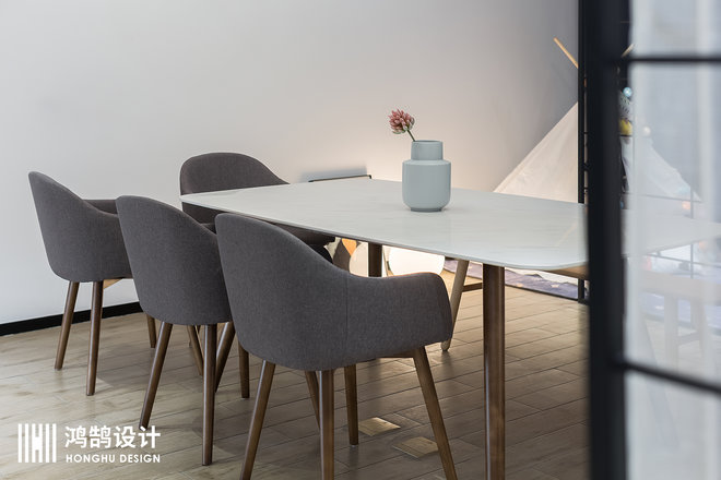 在空间上,用最纯粹的方式表达点线面,遇白则白,以白色为主轴进行铺陈,意在给到客户随行自然的休闲生活方