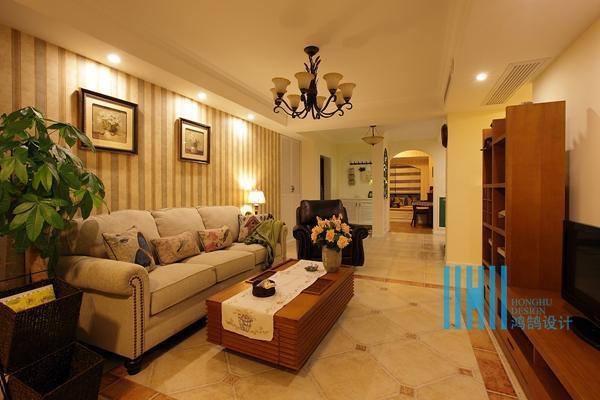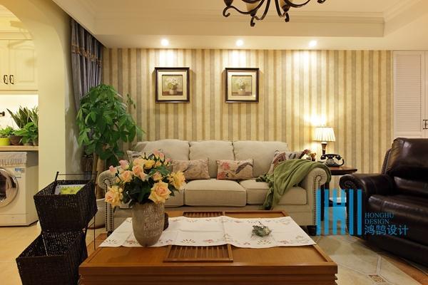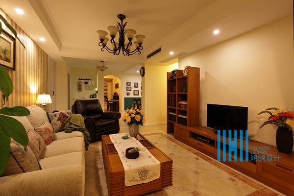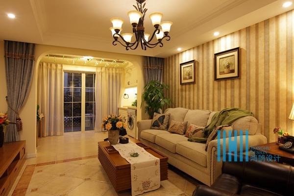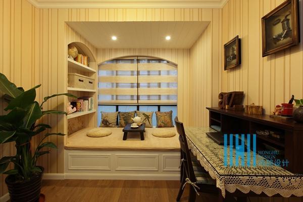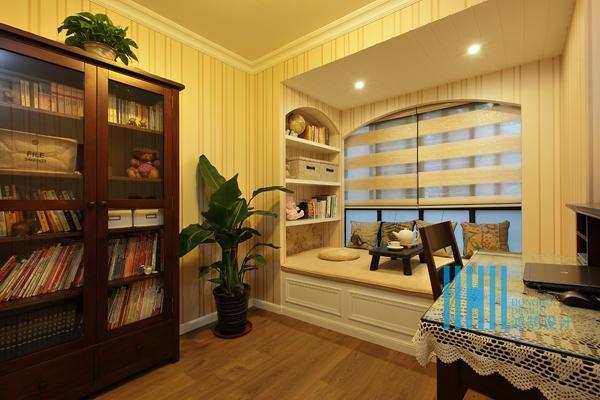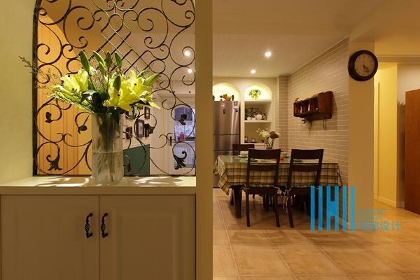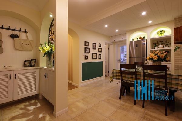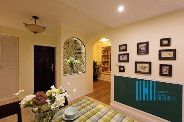 从客厅隐约可以看到隔出来的书房,书房门是一个拱形的造型,和鞋柜左右对称。